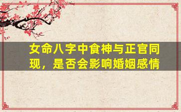 在八字命理中,食神和正官同现于女命,确实可能对婚姻感情产生一定影响,但具体吉凶需结合八字整体格局、五行生克、位置关系等综合分析。以下是几种常见情况的解读:
