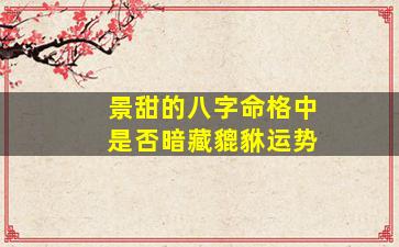 在信息不全的情况下,无法断言景甜命格是否必然暗藏貔貅运势,但若其八字具备财星得库、日主担财等特征,则可能存在类似的财富 accumulation 潜力。建议以理性态度看待命理分析,更多关注个人实际能力与机遇把握。
