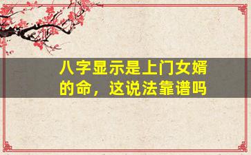 关于“八字显示是上门女婿的命”这一说法,是否靠谱需要从多个角度理性分析: