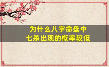 在八字命理学中,七杀(偏官)是十神之一,代表压力、竞争、权威或挑战。关于其出现概率“较低”的说法,需结合命盘结构和五行生克逻辑来理解,以下是可能的原因: