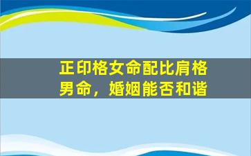 在八字命理中,正印格女命与比肩格男命的婚姻和谐度需要结合双方命局的整体搭配来分析,不能仅凭单一格局下定论。以下是关键点的解析:
