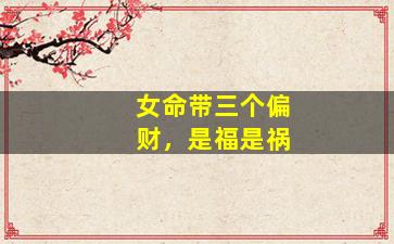 在传统命理学中,“偏财”是八字十神之一,代表意外之财、投机之财、副业收入或非固定收入,也象征人际关系和慷慨大方的性格。关于女命带三个偏财的吉凶,需结合八字整体格局分析,以下是一些常见解读方向: