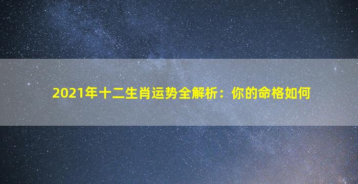 2021年是农历辛丑牛年,十二生肖的运势会受到太岁、五行(金木水火土)以及各生肖与流年干支关系的影响。以下为简化的运势解析,供参考(具体运势需结合个人生辰八字详细分析):