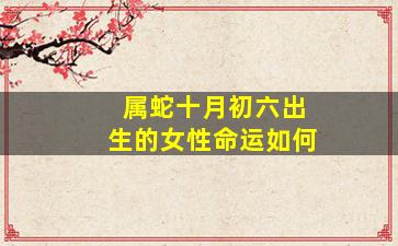 在中国传统命理学中,个人的命运通常通过生辰八字(年、月、日、时四柱)综合分析,而非仅凭生肖和日期就能断定。不过,根据你的问题,我们可以从生肖蛇和农历十月初六的普遍特征出发,提供一些传统文化中的解读参考: