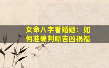 在传统命理学中,女命八字的婚姻分析主要围绕夫星(正官、七杀)、日支(配偶宫)、十神组合及五行生克展开。以下是系统性的判断方法和关键要素: