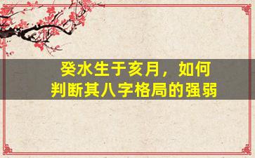 在八字命理中,判断癸水日主生于亥月(农历十月,水旺之季)的格局强弱,需综合月令、干支组合、五行生克等因素分析。以下是具体步骤: