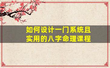 设计一门系统且实用的八字命理课程,需要兼顾传统理论的深度、现代学习的逻辑性,以及实际应用的落地性。以下是一个分步骤的框架设计建议,供参考:
