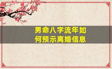 在八字命理中,离婚信息的预示需要结合原局、大运、流年的综合作用来分析,尤其是夫妻宫(日支)和配偶星(男命以正财、偏财为妻星)的刑冲克害关系。以下是男命八字中可能预示离婚的流年特征及分析方法:
