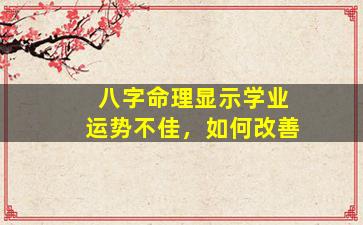 在八字命理学中,学业运势通常与命局中的"印星"(正印、偏印,代表学习能力、文书、长辈帮扶)、"食伤"(食神、伤官,代表思维、表达能力)以及"官星"(正官、七杀,代表压力、目标感)的强弱和平衡有关。如果命理显示学业运势不佳,可以通过以下方式进行调整和改善: