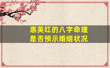 关于惠英红的八字命理与婚姻状况的关系,需要明确几点: