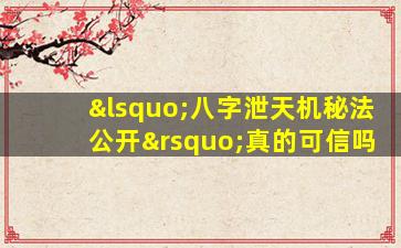 关于“八字泄天机秘法公开”一类的内容,需要理性看待其可信度。以下是几点关键分析,供你参考: