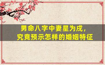 在八字命理中,"妻星为戌"的分析需结合十神、五行生克及戌土的特性综合判断。以下是可能的婚姻特征解读: