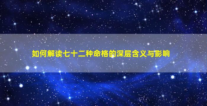 关于“七十二种命格”的解读,需要结合具体的文化背景和命理学体系来分析。这一概念在不同传统中可能有不同来源(如道教、民间术数或文学创作),以下是综合性的解析思路: