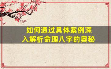 通过具体案例解析命理八字的奥秘,需要结合八字理论框架与实际命盘分析,以下是一个系统性方法及案例示范: