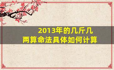 关于“几斤几两算命法”,这是中国民间流传的一种基于出生年月日时计算命重的方法,源自传统的“称骨算命”(相传为唐代袁天罡所创)。虽然2013年并没有特殊的计算方法,但传统称骨算命的规则如下: