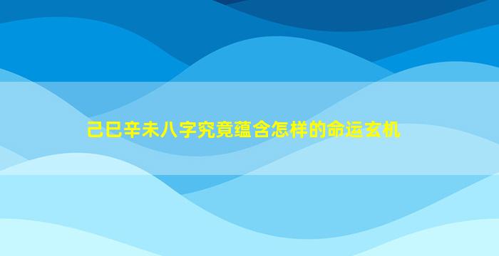 八字命理是中国传统命理学的重要组成部分,通过分析个人出生时的年、月、日、时四柱(共八个字)来推测命运走势。您提到的“己巳辛未”仅是年柱和月柱,完整的八字还需日柱和时柱,但基于现有信息,可初步解读如下: