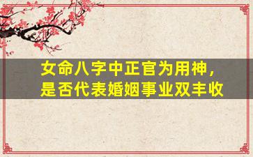 在八字命理中,“正官为用神”确实是一个积极的信号,尤其是对女命而言,通常与婚姻、事业、社会地位等方面有密切关联。但“双丰收”的结论需要结合具体八字格局、五行生克、十神搭配等综合分析,不能仅凭单一因素断言。以下是关键点的解析: