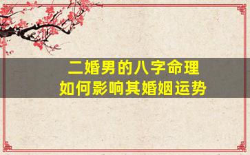 在八字命理中,二婚男性的婚姻运势分析需要综合其命局中的婚姻宫、配偶星、五行生克以及大运流年的影响。以下从专业角度分点解析可能的影响因素:
