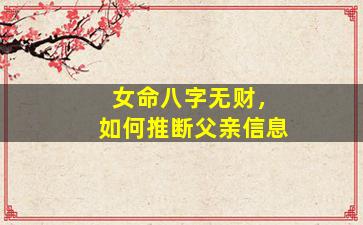 在八字命理中,女命八字无财(即天干地支无正偏财星),确实增加了推断父亲信息的难度,但并非无从下手。此时需结合十神关系、宫位、暗藏五行及特殊组合综合判断。以下是具体思路: