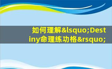 “Destiny命理练功格”这一概念并非传统命理学中的常见术语,可能是现代命理实践中独创的体系或工具。以下从多个角度尝试解析其可能的核心作用,供参考:
