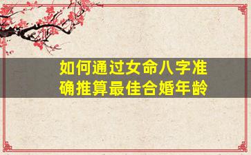 通过女命八字推算最佳合婚年龄,需结合命局中的婚姻信号、配偶宫、十神组合及大运流年的互动,以下是系统化的推算方法: