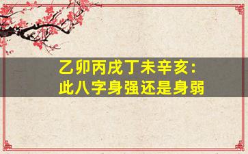 要分析八字“乙卯 丙戌 丁未 辛亥”的身强身弱,需综合日主、月令、五行生克及格局平衡来判断。以下是逐步分析: