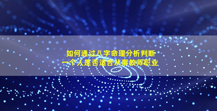通过八字命理分析一个人是否适合从事教师职业,需结合其命局中的五行生克、十神组合、用神喜忌以及性格特质等多方面因素。以下为具体的分析思路和方法: