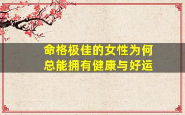 关于“命格极佳的女性为何总能拥有健康与好运”,可以从传统文化、心理学、社会学等多个角度来探讨。需要注意的是,“命格”这一概念源于玄学或命理学,其科学性存在争议,但我们可以尝试结合现实因素来理解这一现象背后的逻辑。