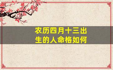 在中国传统命理学中,个人的命运与生辰八字(年、月、日、时的天干地支)密切相关,仅凭农历日期(如四月十三)无法全面分析命格,但可以结合传统文化和民俗角度提供一些参考信息: