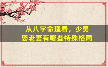 在八字命理中,少男娶老妻(男命配偶年龄明显大于自己)的特殊格局,通常与命局中的特定组合和五行生克有关。以下是几种典型的命理格局及其解释: