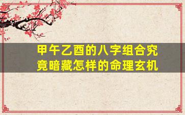 关于“甲午乙酉”的八字组合(假设为年柱甲午、月柱乙酉),其命理分析需结合五行生克、十神配置及干支特性,以下为关键玄机解析: