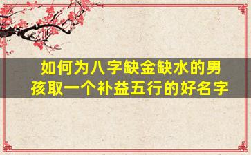 为八字缺金缺水的男孩取名时,需结合五行相生相补的原则(金生水,金水互助),同时兼顾音韵美感和文化寓意。以下是具体的取名思路和精选建议: