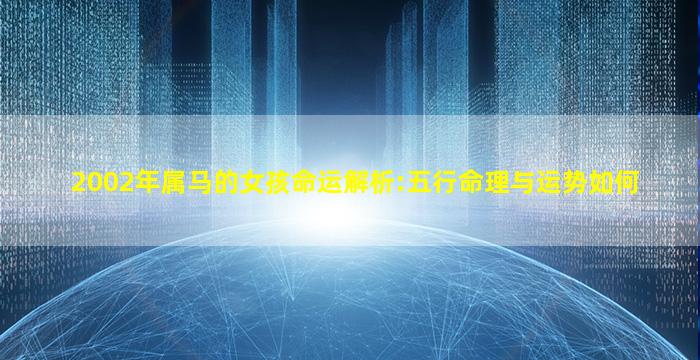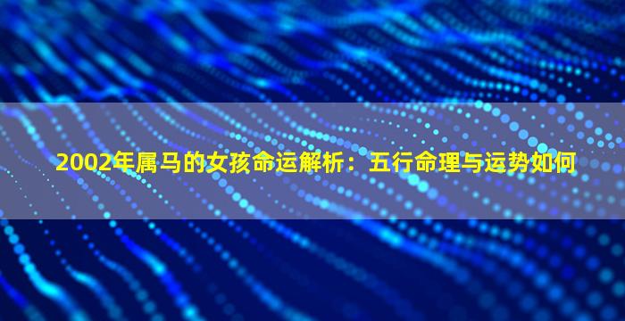 根据中国传统命理学,2002年出生的属马女孩(壬午年)的五行命理与运势可以从以下几个方面解析,供参考: