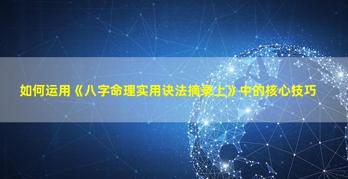 运用《八字命理实用诀法摘录上》中的核心技巧,需结合传统命理学的理论框架,注重实践与逻辑分析。以下为具体方法和步骤: