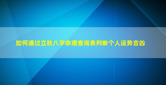 通过立秋八字命理查询表(即生辰八字排盘)判断个人运势吉凶,是传统命理学中较为复杂的方法,需要结合五行生克、十神、大运、流年等因素综合分析。以下是具体步骤和要点: