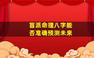 关于盲派命理八字能否准确预测未来的问题,涉及传统命理学的理论框架、实践效果以及科学视角的争议。以下从多个角度分析,供参考: