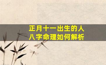 根据命理学,八字(四柱)的解析需要结合具体的出生年份、时辰和性别(用于排大运),仅凭农历正月十一的日期无法排出完整八字。但可以提供一些基础框架和共性分析,供参考: