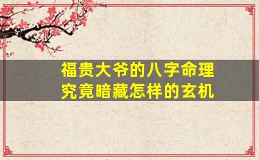 关于“福贵大爷”的命理玄机,我们可以从传统八字命理的角度进行象征性解读(注:因无具体出生时间,以下分析仅为通用框架):
