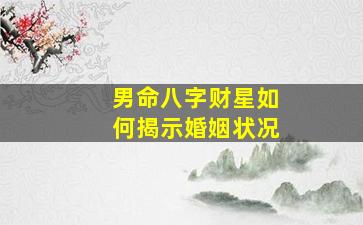 在八字命理中,男命的财星(正财、偏财)被视为分析婚姻状况的重要依据之一。财星不仅代表财富,也象征妻子、异性缘及婚姻关系的稳定性。以下是具体的解读逻辑和方法: