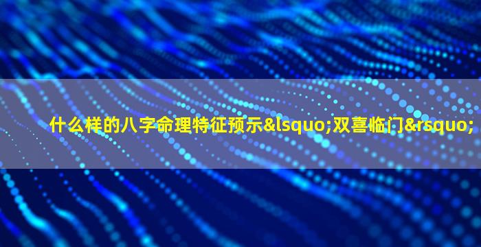 在八字命理中,“双喜临门”通常指短期内同时迎来两件喜庆之事(如婚嫁、添丁、升职、置业等)。其命理特征往往与吉星汇聚、五行生克调和、用神得力有关。以下是常见的预示“双喜临门”的八字特征: