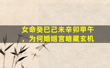 在八字命理中,婚姻宫(日支)的暗藏玄机往往与十神组合、五行生克及特殊格局相关。针对女命 癸巳 己未 辛卯 甲午(假设为坤造),我们从婚姻宫角度解析潜在玄机如下: