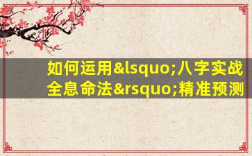 “八字实战全息命法”是传统命理学中一种综合运用八字(四柱)进行深度分析的方法,强调多维度、动态化地解读人生运势。其核心在于通过八字原局、大运、流年、神煞、五行生克等要素的全息联动,结合现实逻辑进行精准预测。以下是关键步骤和要点: