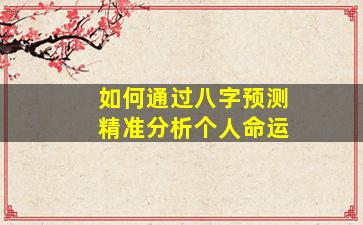 通过八字(四柱命理)预测个人命运是中国传统命理学的核心方法之一,其理论体系以阴阳五行、天干地支为基础,结合大运、流年等因素综合分析。以下为精准分析的步骤和要点: