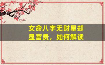 在八字命理中,"财星"代表物质财富、经济能力,但女命八字无财星却显富贵的情况,需结合命局整体结构和五行生克来综合解读。以下是几种常见原因: