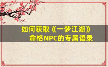 在《一梦江湖》(原《楚留香手游》)中,命格NPC的专属语录通常与玩家的命格选择、剧情分支以及互动选项相关。以下是获取这些语录的详细方法: