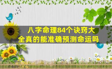 关于“八字命理84个诀窍大全”是否能准确预测命运的问题,需要从命理学本身的特点、科学性和实际应用角度综合分析: