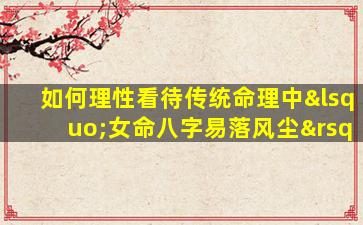 理性看待传统命理中“女命八字易落风尘”的说法,需要结合历史背景、文化语境、科学思维和社会伦理等多角度进行分析。以下是一些思考方向: