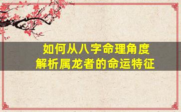 从八字命理角度解析属龙者的命运特征,需结合天干地支、五行生克、十神配置等理论综合分析。以下是具体解析框架: