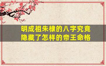 明成祖朱棣(1360年5月2日-1424年8月12日)的八字命盘,若按传统命理学分析,其格局确实展现出与帝王身份高度契合的特征。以下基于其出生日期(农历庚子年四月初四日)的八字排盘及命理分析: