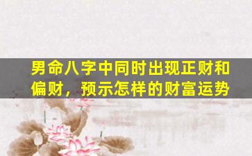 在八字命理中,正财与偏财同时出现于男命的命局,确实对财富运势有独特影响,但需结合整体格局、十神配置及五行生克来综合判断。以下是具体的分析要点: